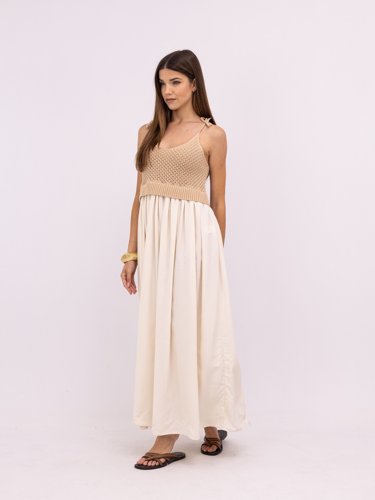 19.99€Vestido Longo Bicolor com Busto em Crochet