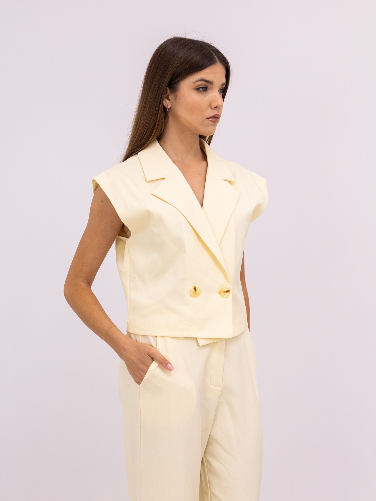 24.99€Colete Alfaiataria Cropped com Ombreiras – Sofisticação Estruturada