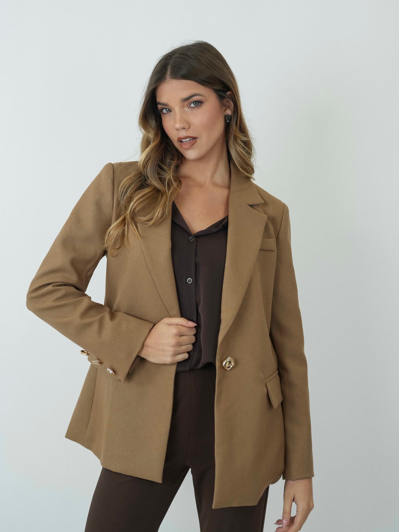 O Blazer com Botão Dourado combina elegância clássica com um toque moderno. Confeccionado em tecido estruturado de alta qualidade, ele oferece caimento impecável e conforto ao longo do dia. O destaque fica por conta dos botões dourados, que adicionam brilho na medida certa e elevam instantaneamente qualquer produção.