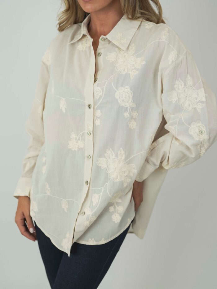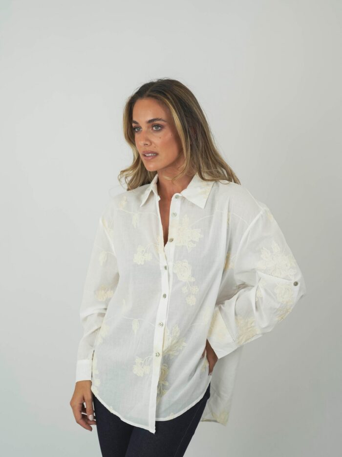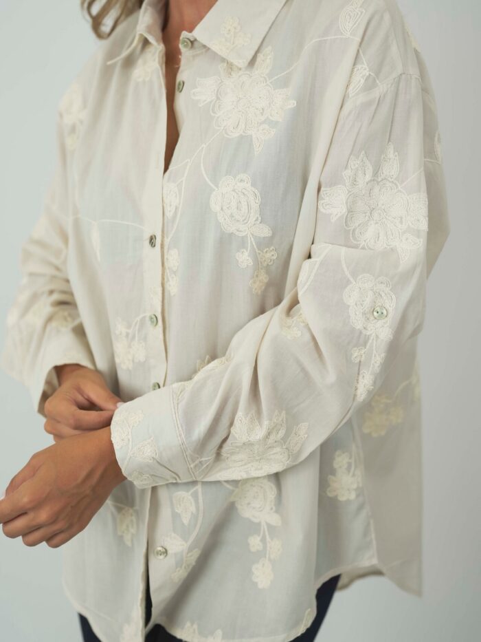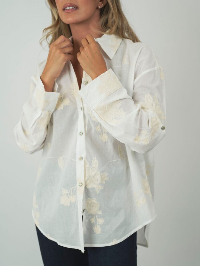 Blusa com bordados e relevos é uma peça cheia de detalhes. Os bordados acrescentam um toque artesanal e delicado, podendo apresentar desenhos. Já os relevos criam uma textura diferenciada.