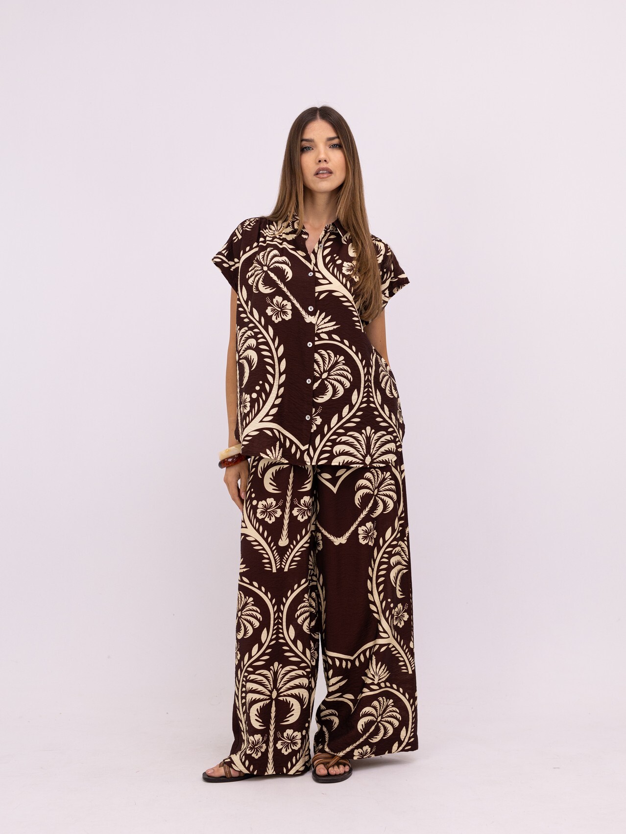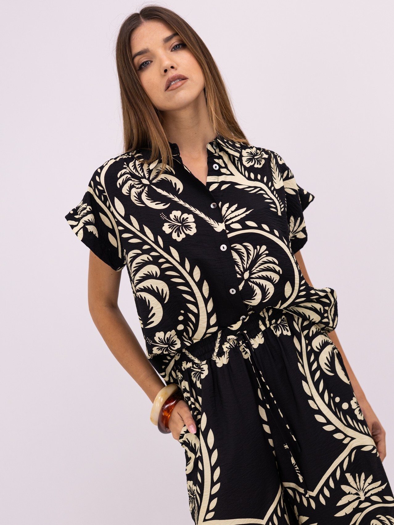Versátil e fresca, esta camisa é a escolha perfeita para os dias mais quentes. O design de corte reto e mangas curtas oferece um ajuste confortável e moderno. O padrão botânico clássico em preto e creme garante um visual atemporal que transita facilmente do escritório para um jantar ao final do dia.
