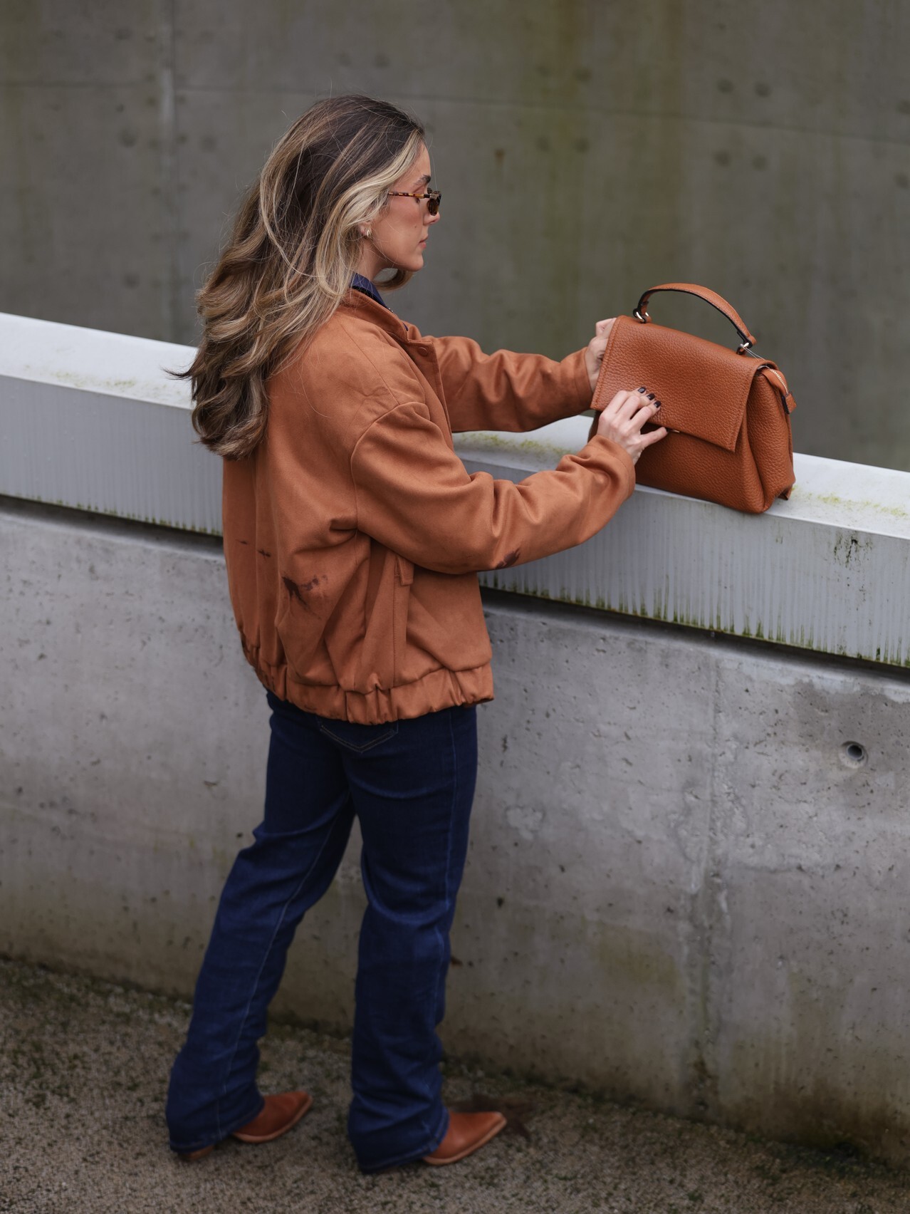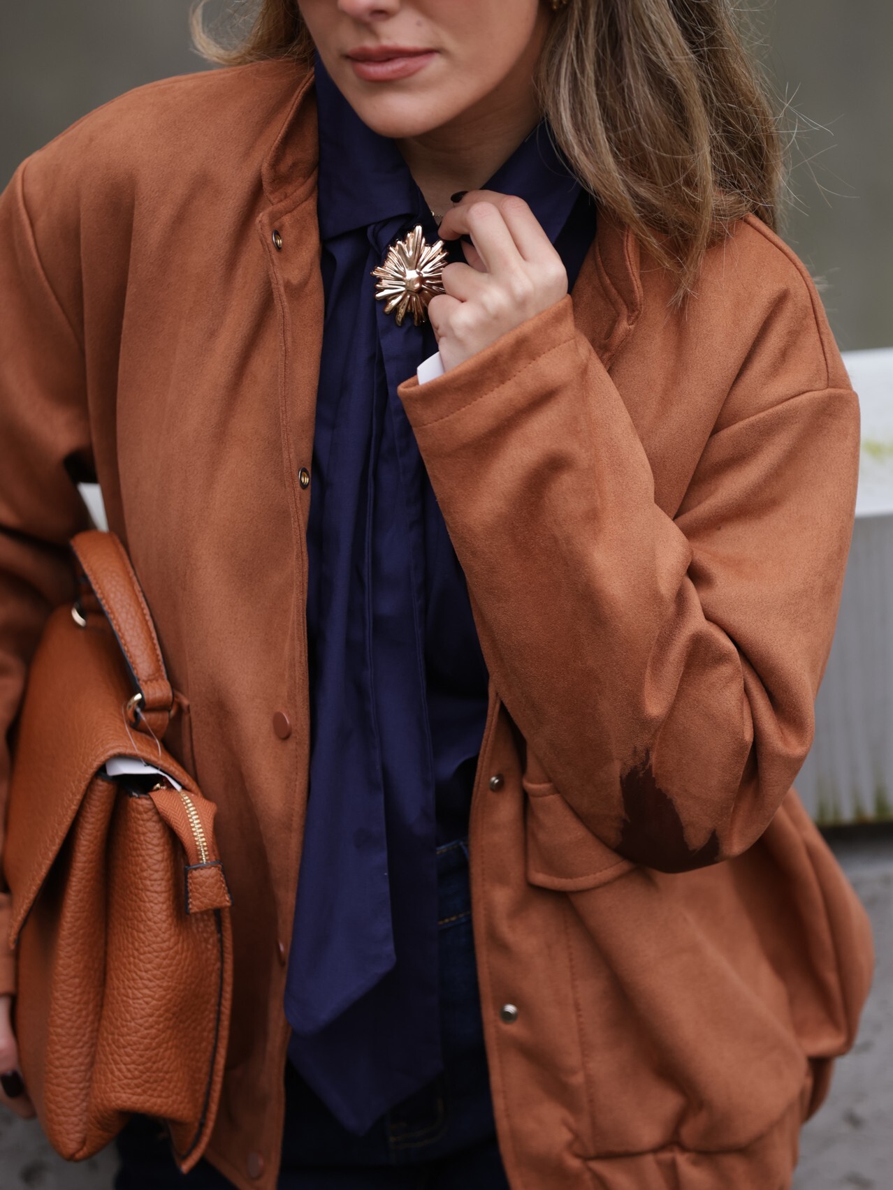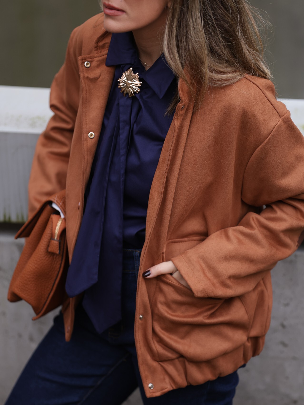 Blusão fino em pele de pêssego, com toque macio e acabamento suave que proporciona conforto e leveza ao longo do dia. Modelo moderno e versátil, ideal para meia-estação. Possui dois bolsos verticais funcionais, perfeitos para manter os essenciais sempre à mão. A cintura com elástico garante melhor ajuste ao corpo e um caimento confortável. O fecho com botões de mola acrescenta praticidade e um detalhe discreto e contemporâneo ao design.