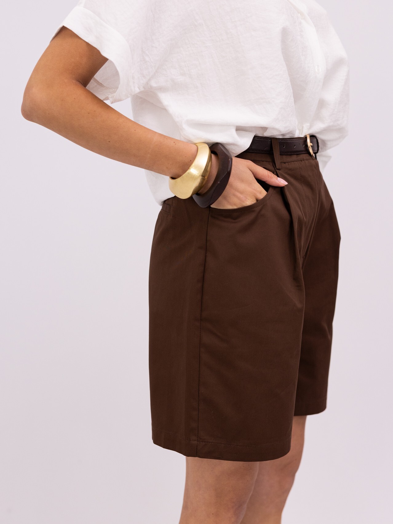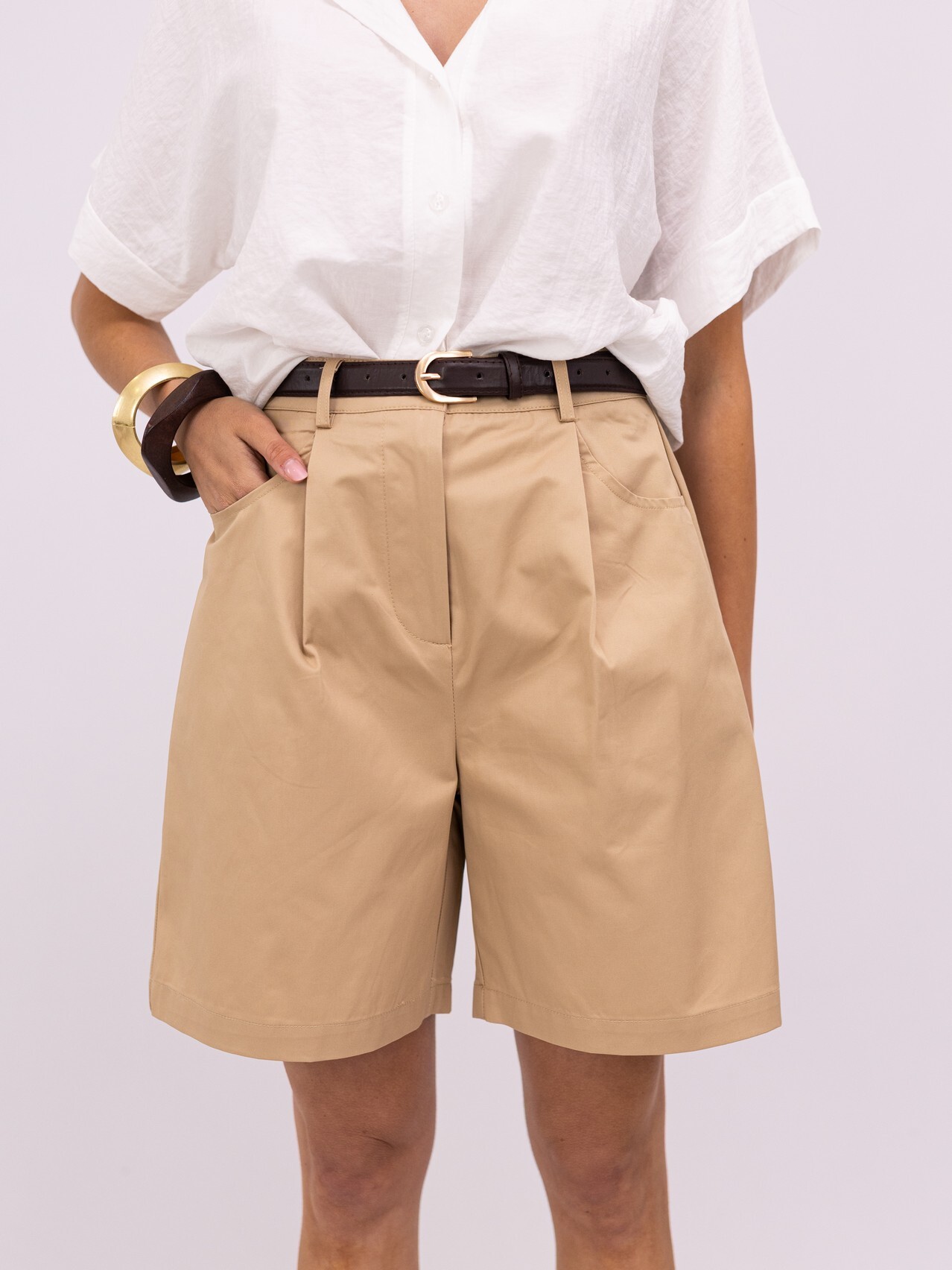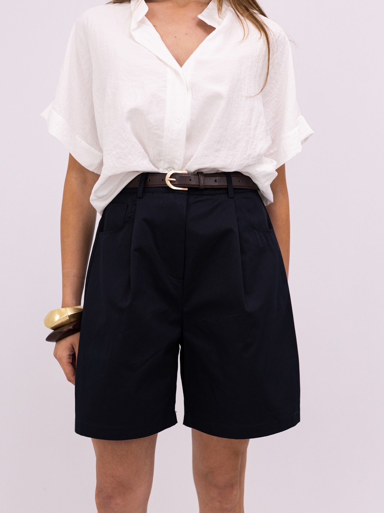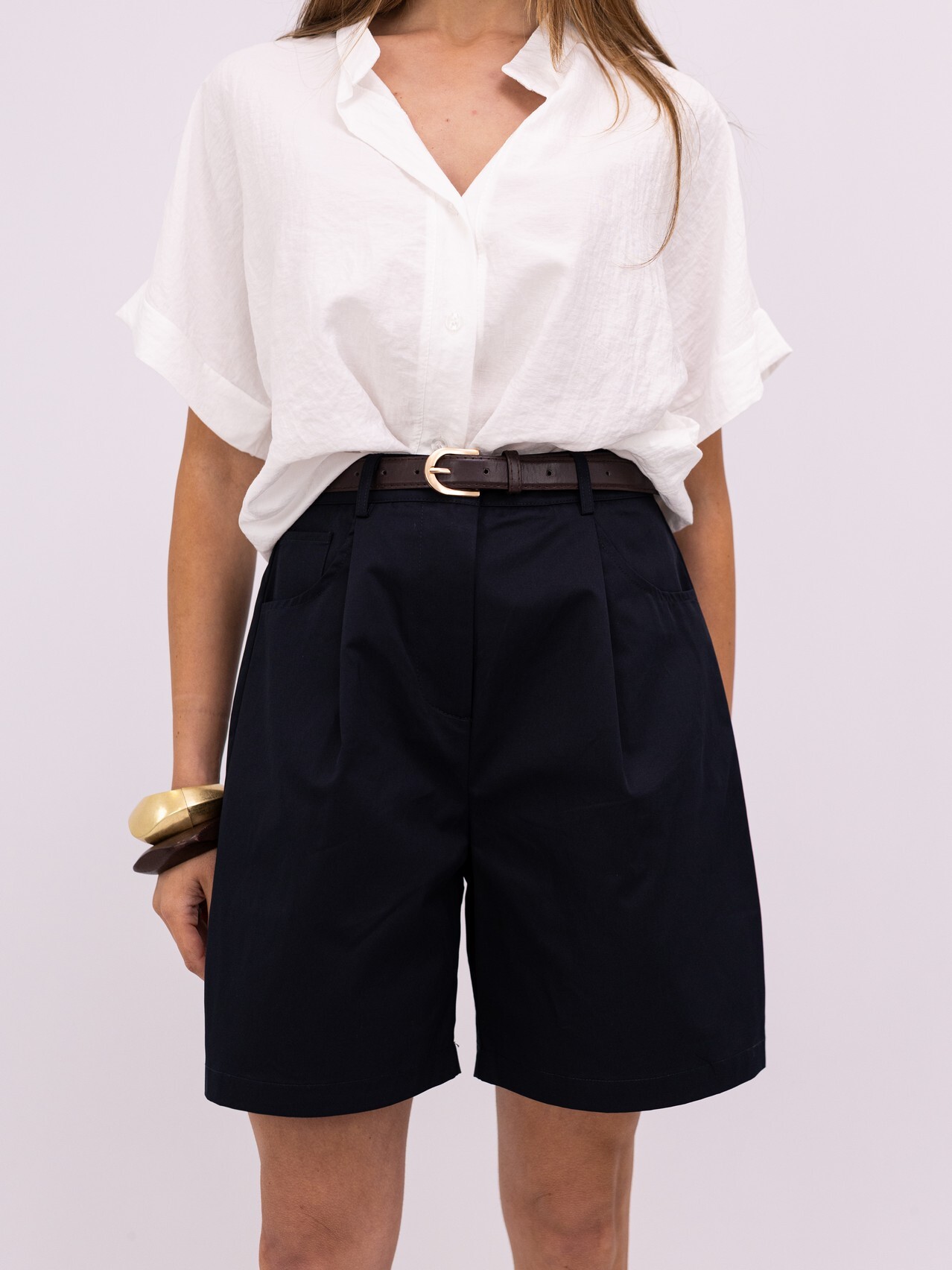 Eleve o seu guarda-roupa de verão com esta bermuda de corte impecável. Unindo a sofisticação da alfaiataria clássica a um design contemporâneo e fresco, esta peça é a escolha ideal para quem não abdica da elegância, mesmo nos dias mais quentes.