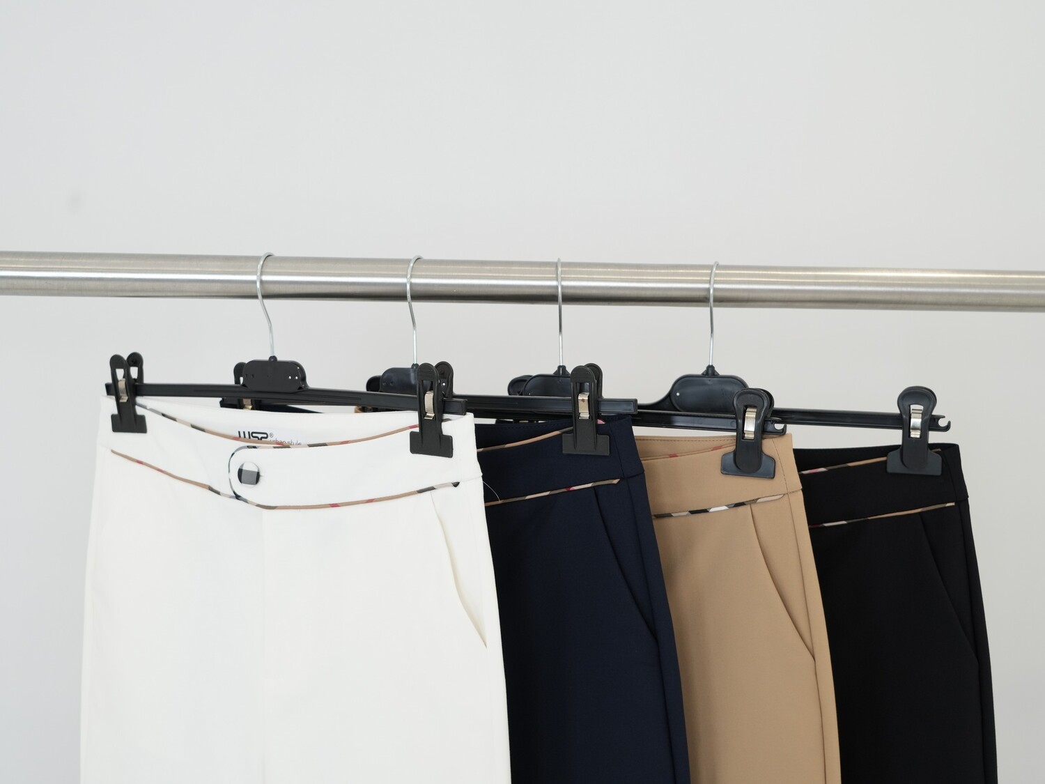 Eleve o seu guarda-roupa com estas calças clássicas de alfaiataria, desenhadas para a mulher que não abdica da sofisticação e do conforto no dia a dia. Com um corte reto impecável e cintura de altura média/subida, estas peças são a base perfeita para looks de trabalho ou eventos formais.