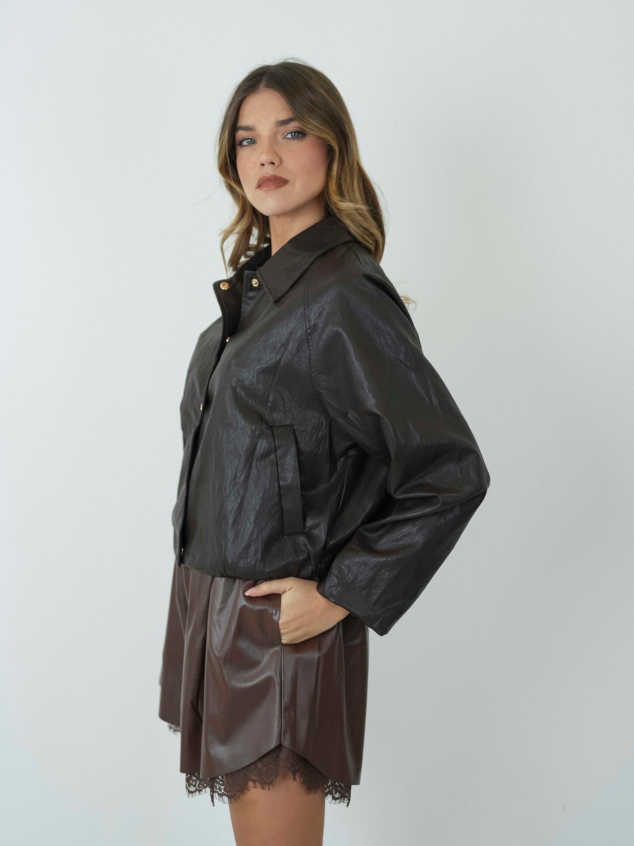 Destaque-se com esta casaca de napa com efeito balão, uma peça que une personalidade, modernidade e elegância. Confeccionada em napa de alta qualidade, apresenta acabamento estruturado e toque sofisticado, perfeito para quem busca um visual marcante.