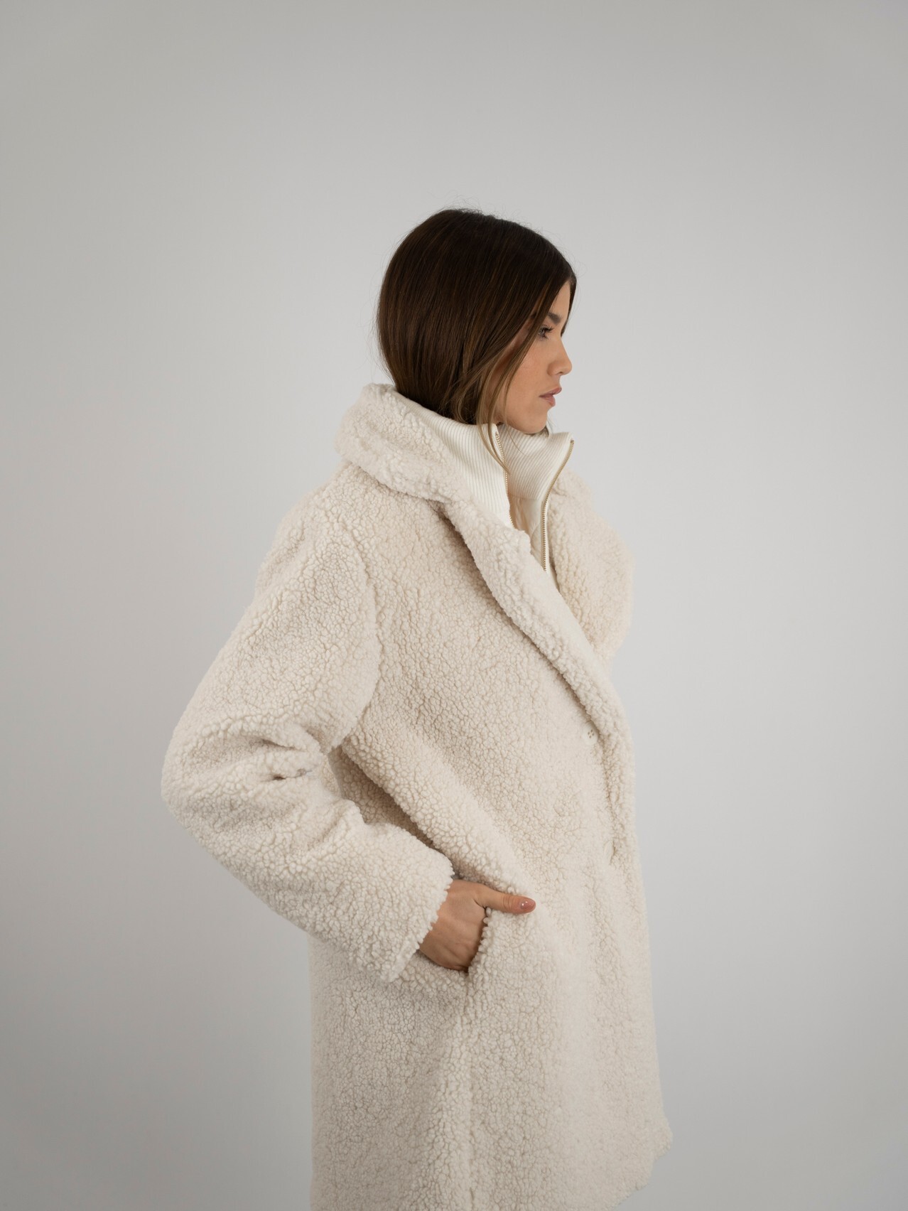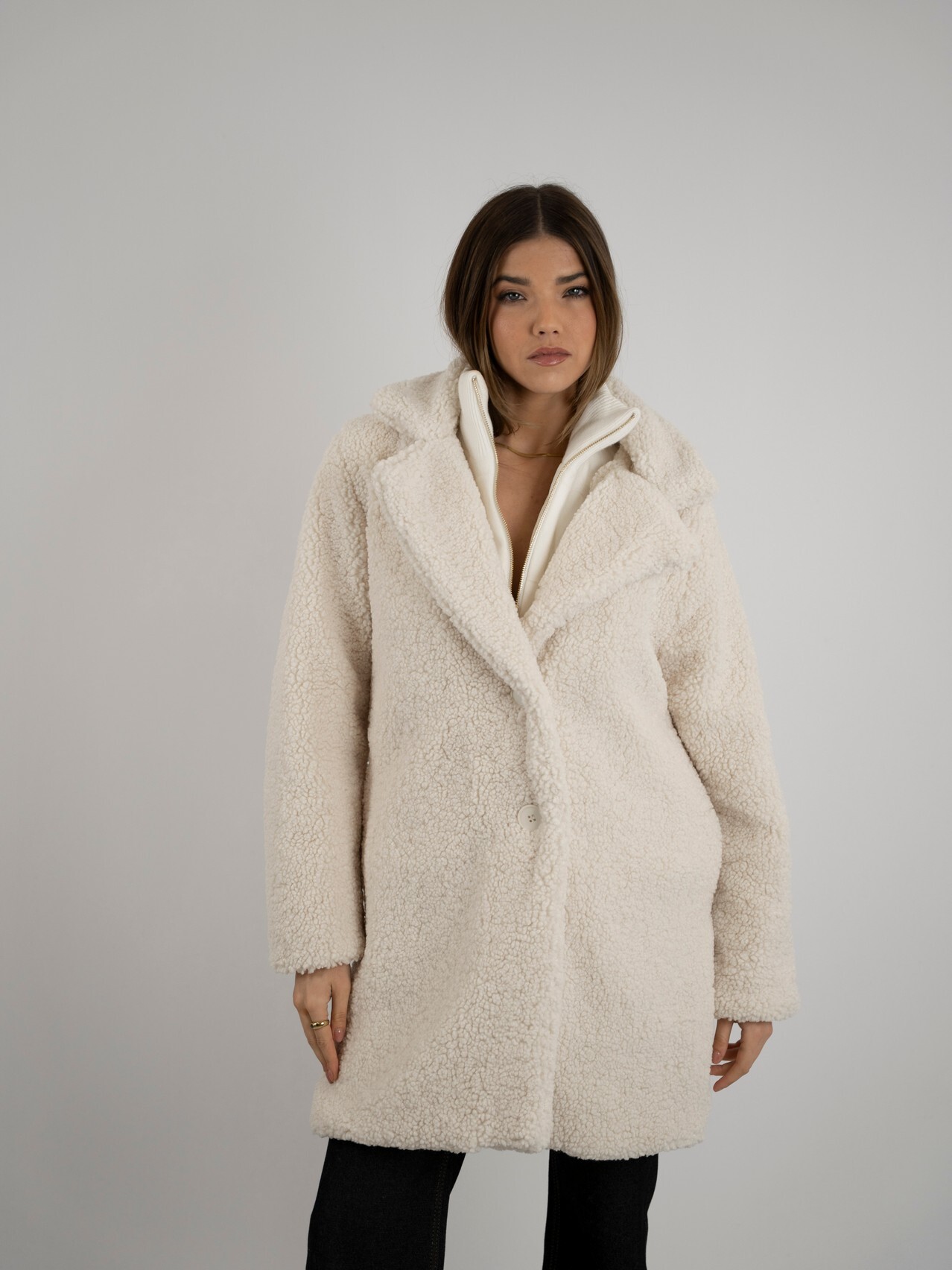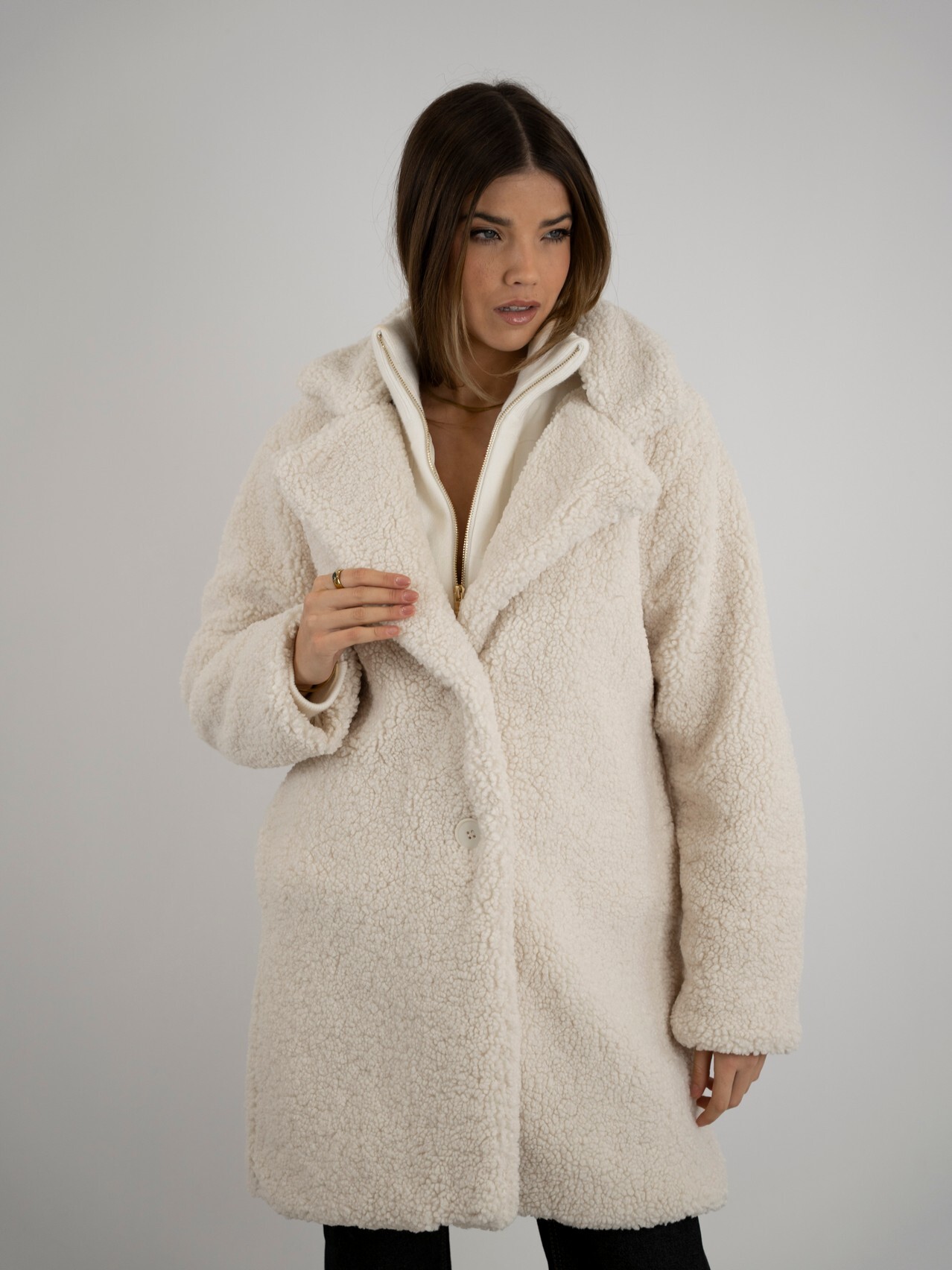Casaco midi em pelo enroscado, elegante e extremamente aconchegante. Com textura volumosa e macia, proporciona conforto térmico ideal para os dias mais frios. O comprimento midi confere um toque sofisticado ao visual, tornando a peça perfeita para looks modernos e cheios de estilo. Um casaco marcante que une charme, conforto e elegância. 🧥✨