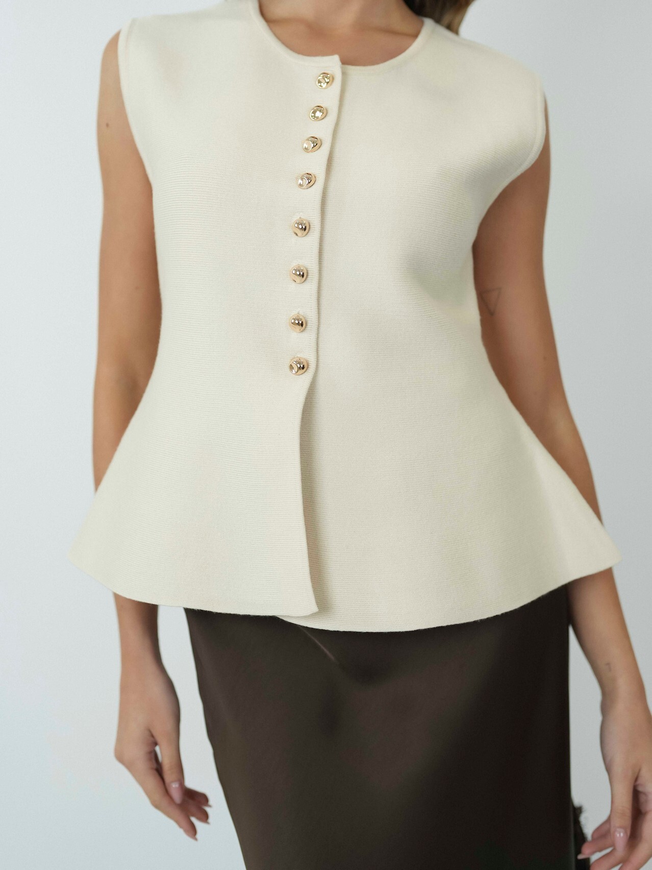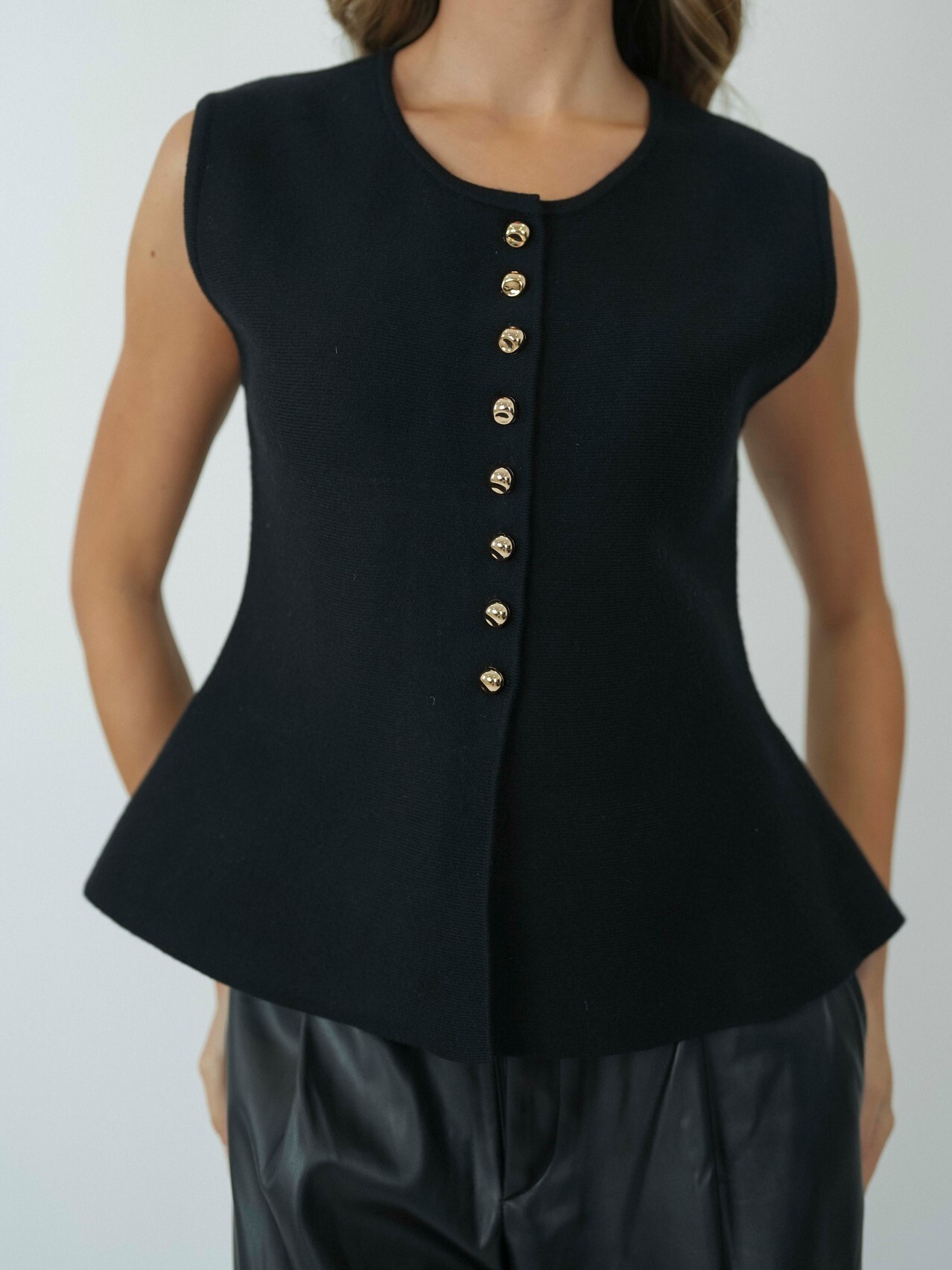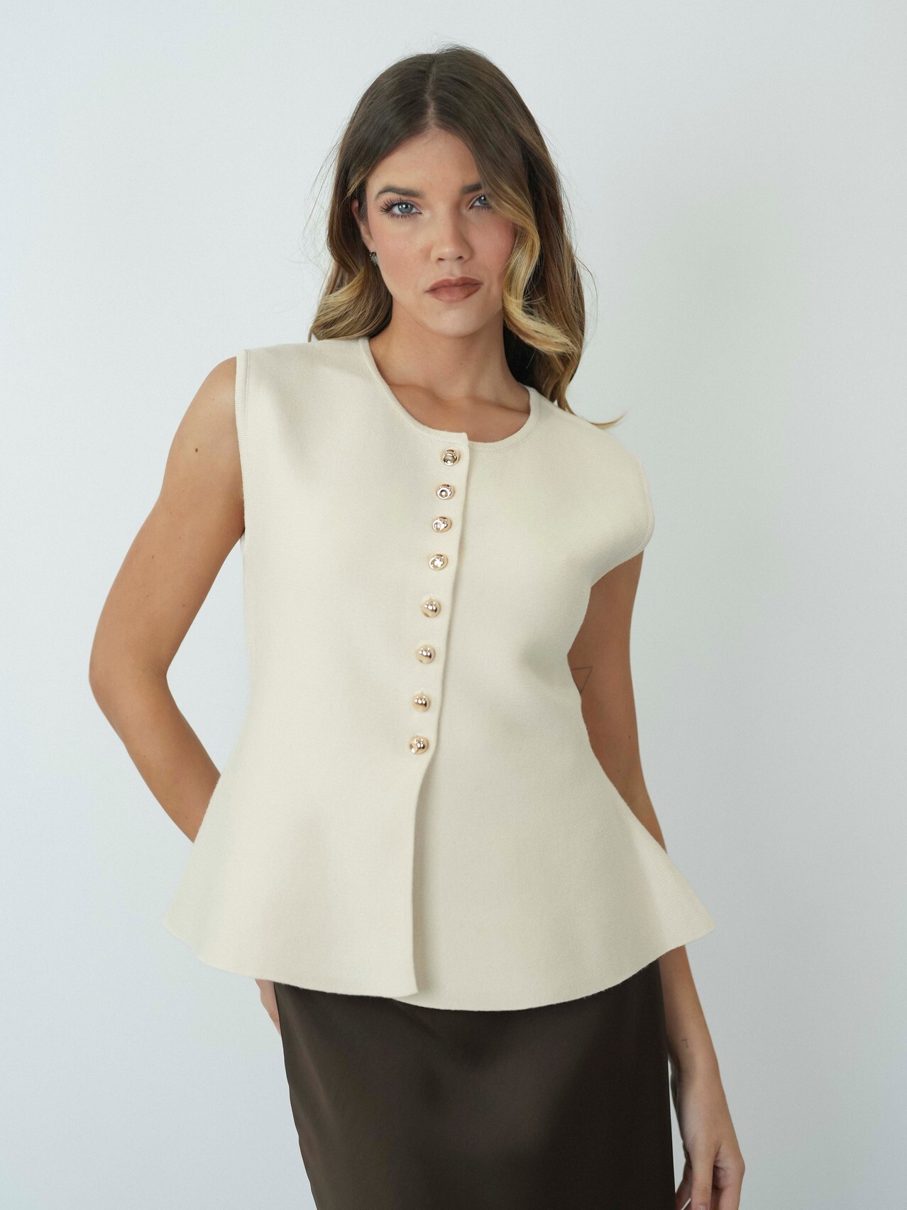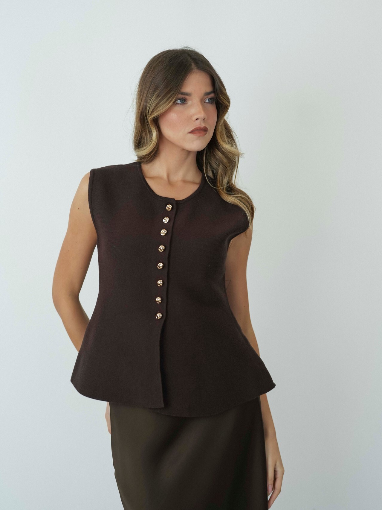 Colete de Malha com Botões Dourados – Sofisticação em Cada Detalhe