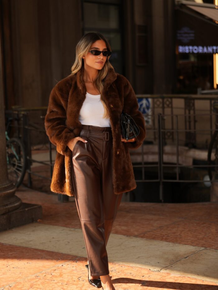 Eleve o seu visual com estas calças largas em napa, a combinação perfeita entre elegância contemporânea e conforto urbano. O tecido em napa oferece um toque macio e sofisticado, com um ligeiro brilho