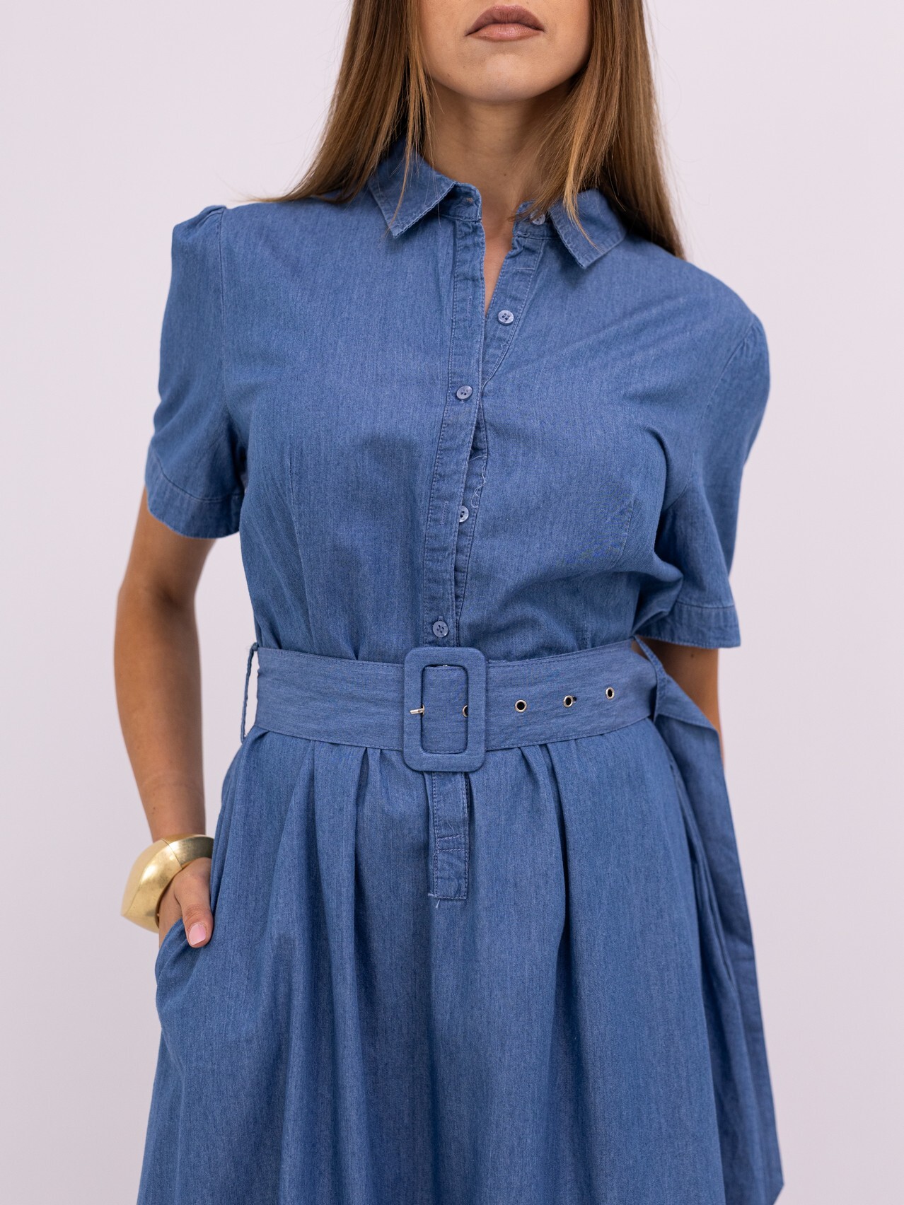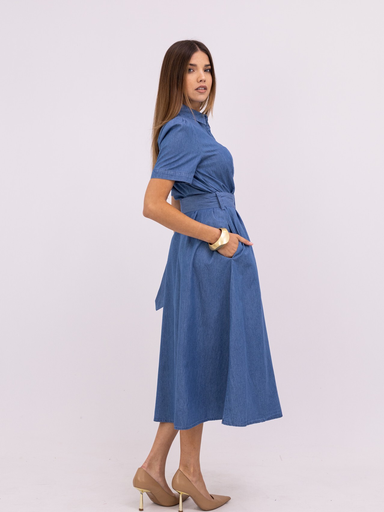 Vestido Midi Chemise em Denim Leve – Azul Clássico