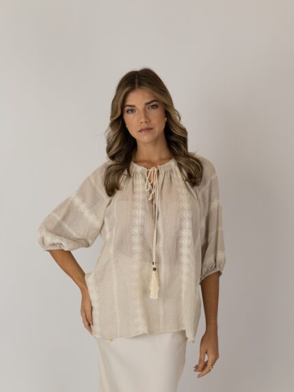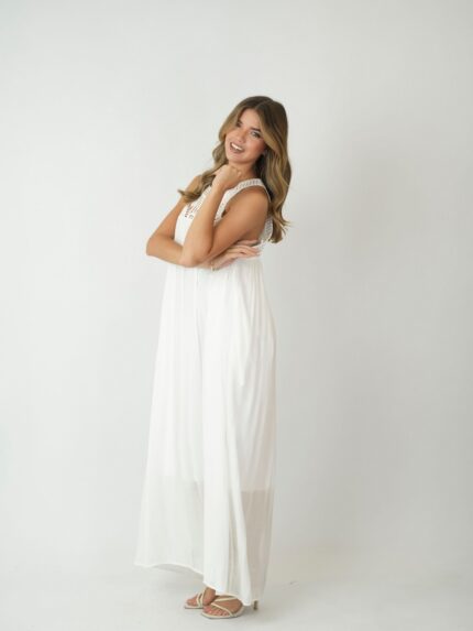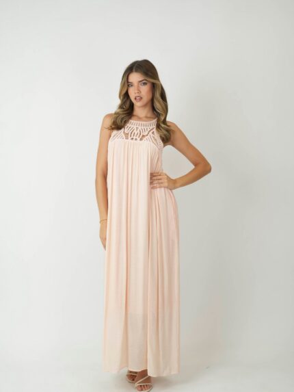 Vestido de Senhora com pormenor bordado na zona do peito.