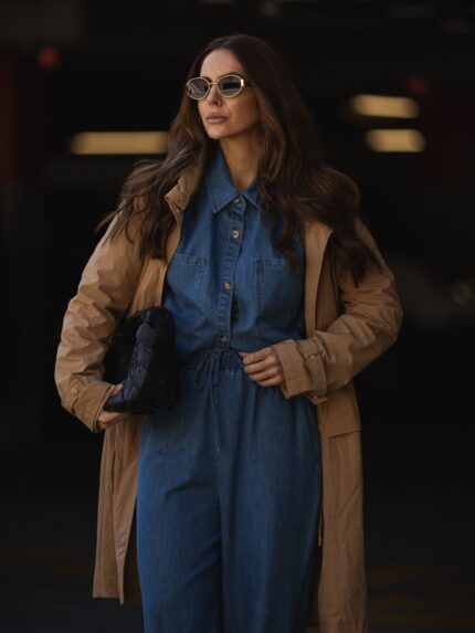 Vestido midi oversize feminino com um elegante decote em V, oferecendo um visual moderno e descontraído.